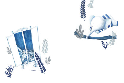 Ilustración original realizadas con acuarela, lápiz, y papel recortado.