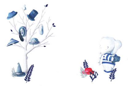 Ilustración original realizadas con acuarela, lápiz, y papel recortado.